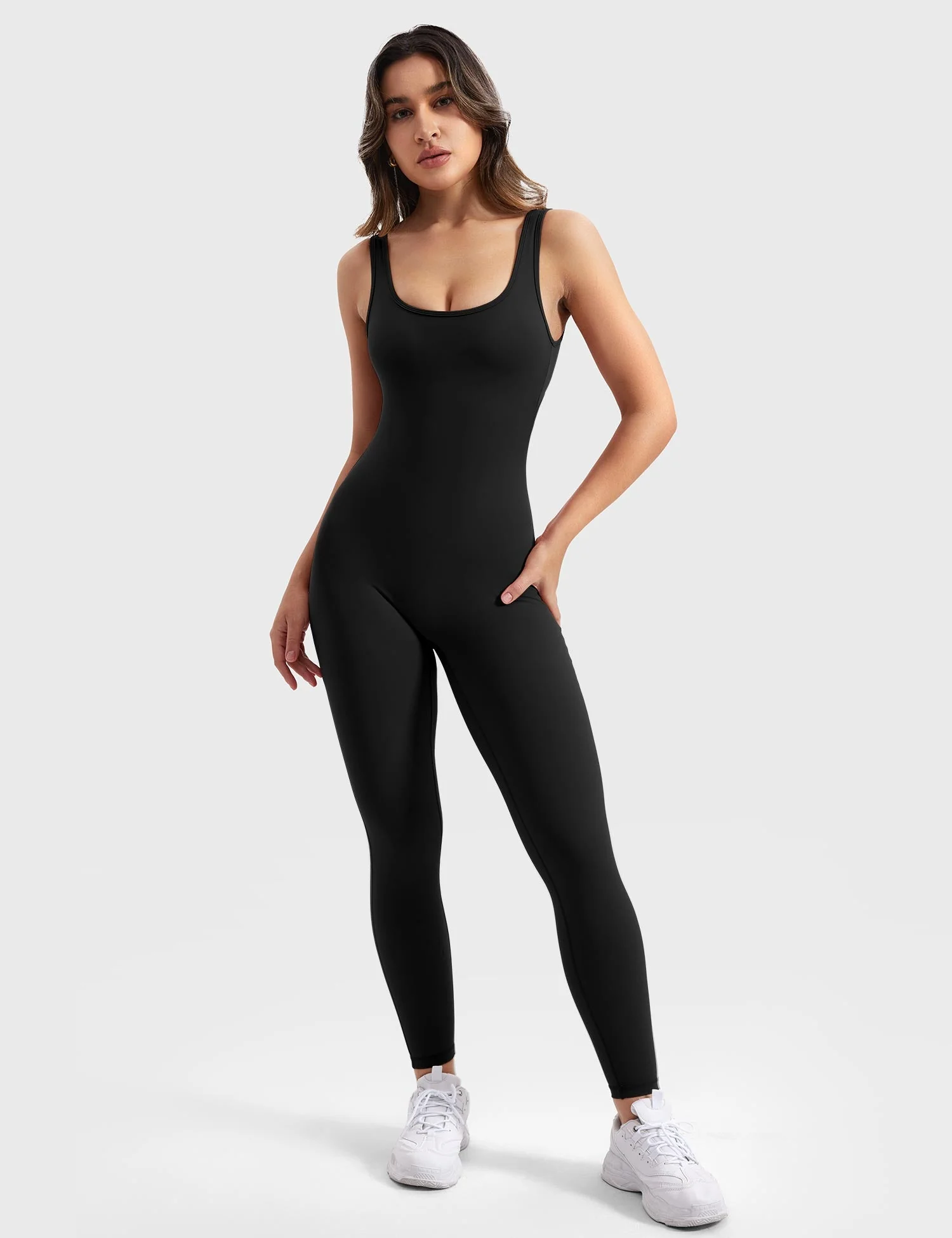 Mit einem Vier-Wege-Stretchdesign bietet dieser Jumpsuit Ihnen volle Bewegungsfreiheit und Flexibilität, egal welcher Aktivität Sie nachgehen. Der elegante V-Ausschnitt betont Ihre Figurenlinie, während der tiefe V-Ausschnitt und die skulptierten Hüftkurven eine schmeichelhafte Silhouette schaffen. Die ausgestellten Beine verlängern optisch Ihre Beine und heben Ihre Kurven auf eine schöne Weise hervor.